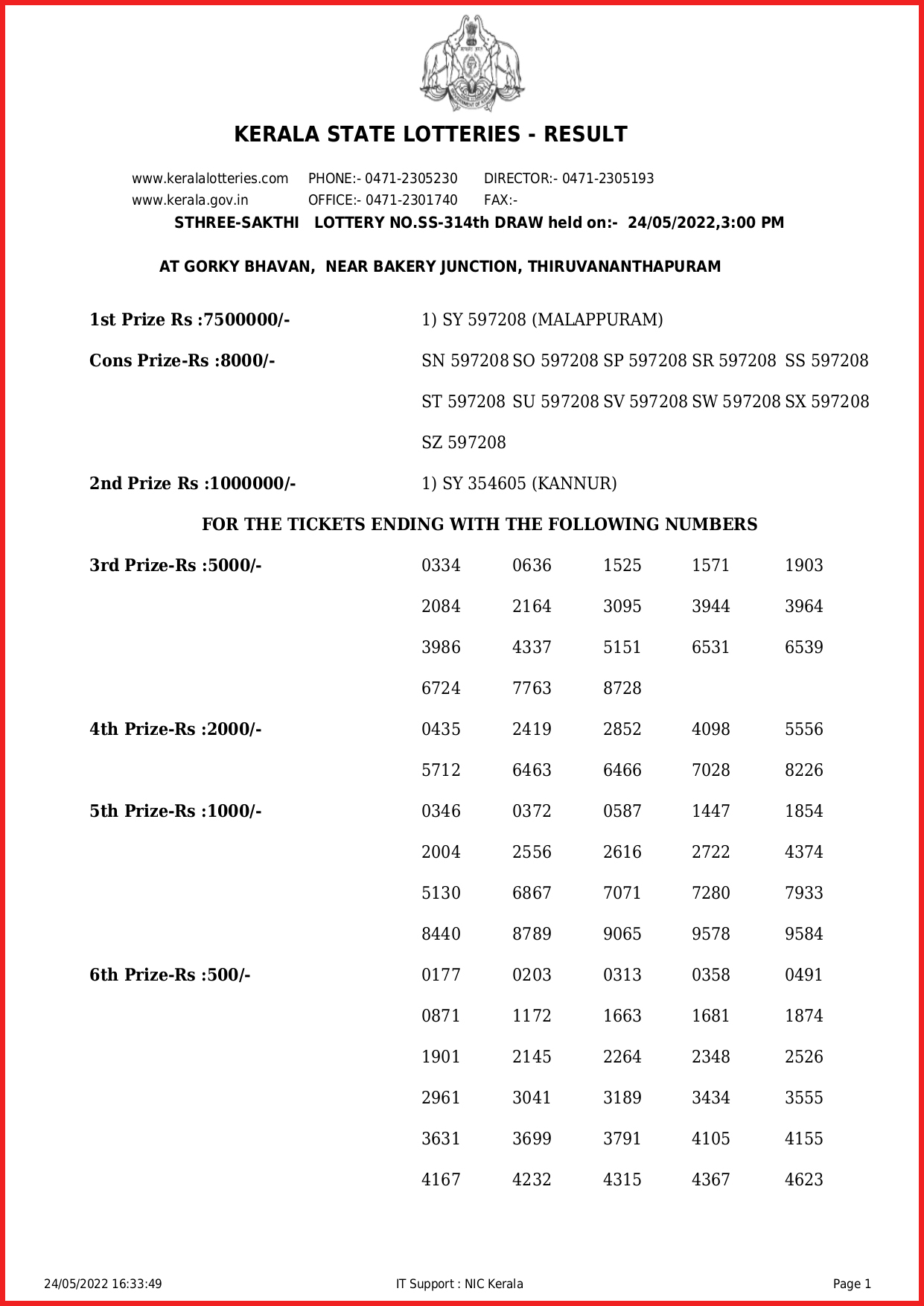 Date of Draw 24 05 2022 Sthree Sakthi Lottery Result (SS-314) (Kerala samsthana bhagyakuri narukkedup phalam)